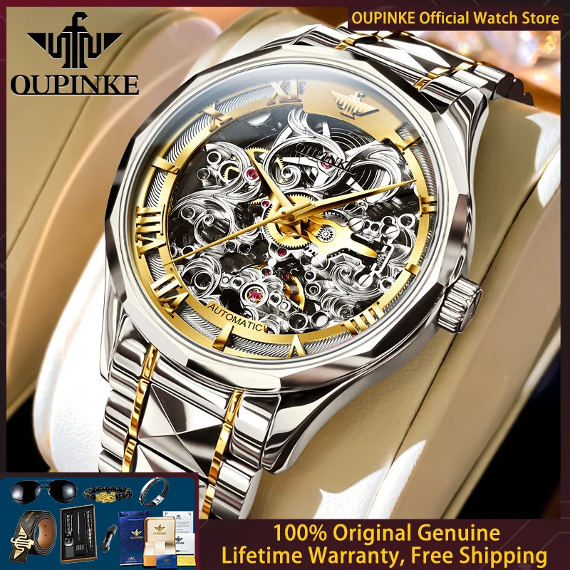 OUPINKE 3168 Original Luxury Men Watch Brand Business Automatic Mechanical Watch Sapphire Mirror Tungsten Steel Hollow Men Watch