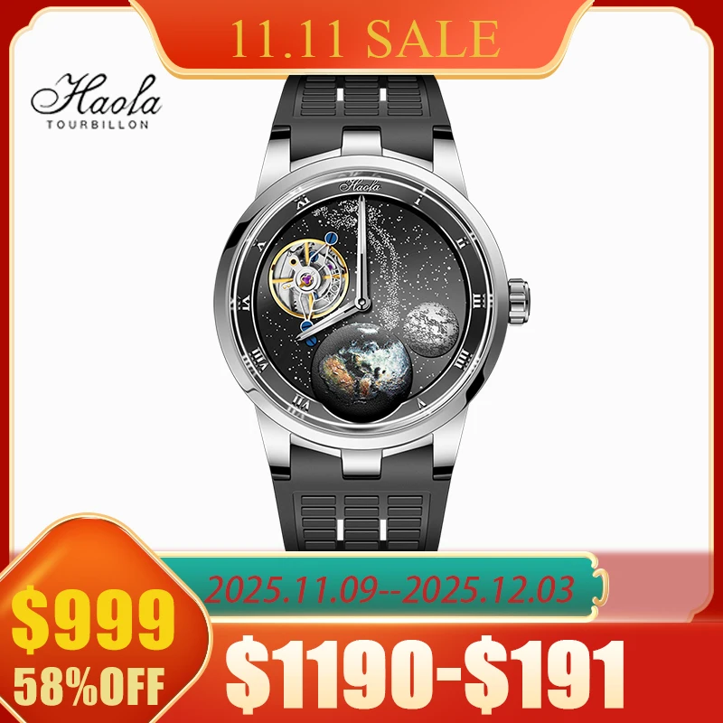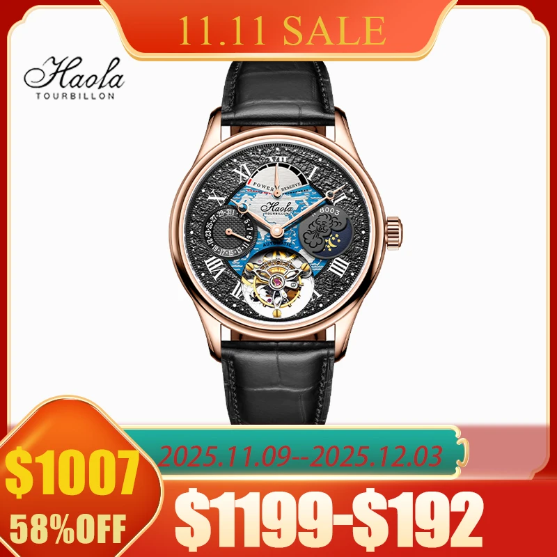 Haofa Luxury Flying Tourbillon Watches for Men Skeleton Moon Phase Sapphire Automatic Mechanical Watch Waterproof Business 8003