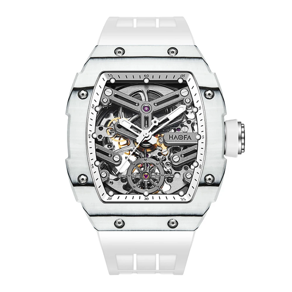 Haofa Automatic Mens Watch Carbon Fiber 3D Skeleton Dial Sapphire Luminous Self Wind Mechanical Watches Waterproof Luxury 1982