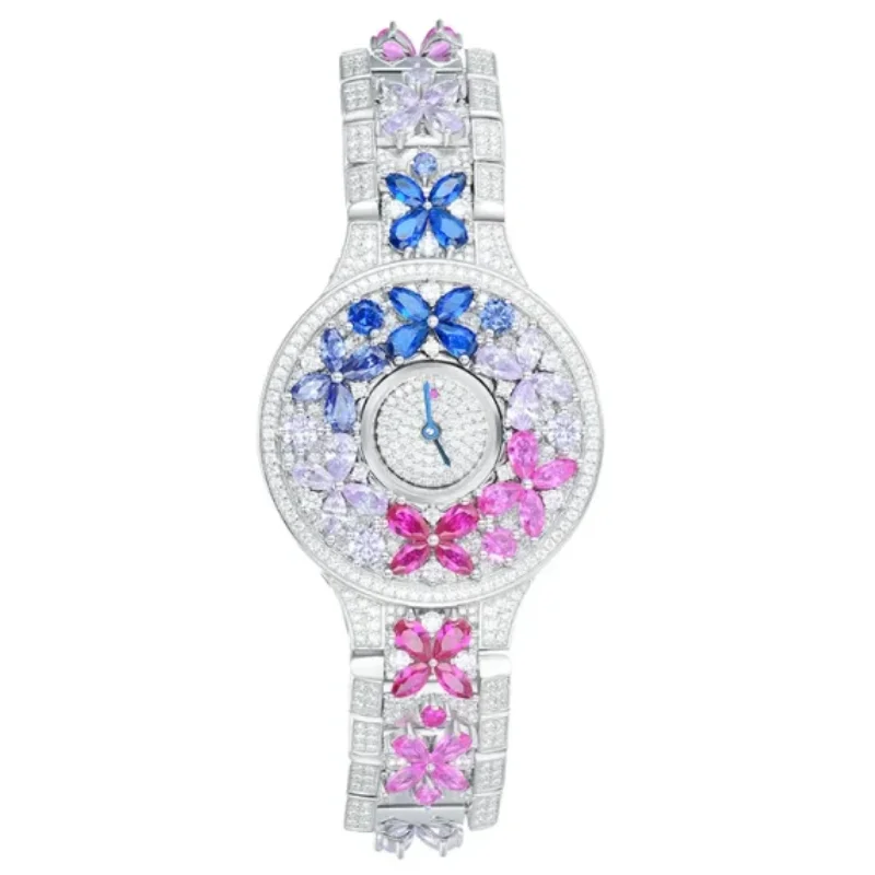 BELLUX Official Design Butterfly Colored Synthetic Gemstone Full Diamond 925 Silver Women's Luxury Watch Fine Jewelry Gift