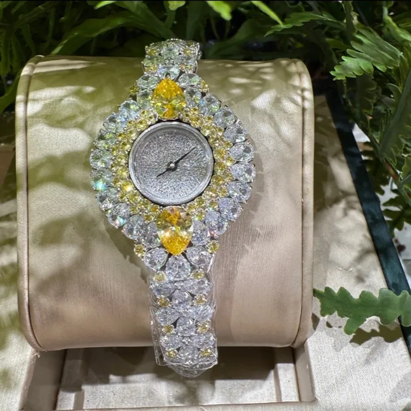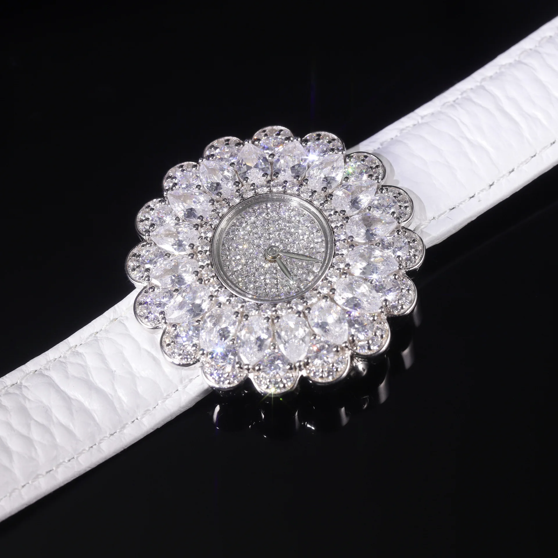 Watch for Women 925 Sterling Silver D Color Moissanite Diamond Flower Bracelet Watch for Wedding Party Fine Jewelry Wholesale