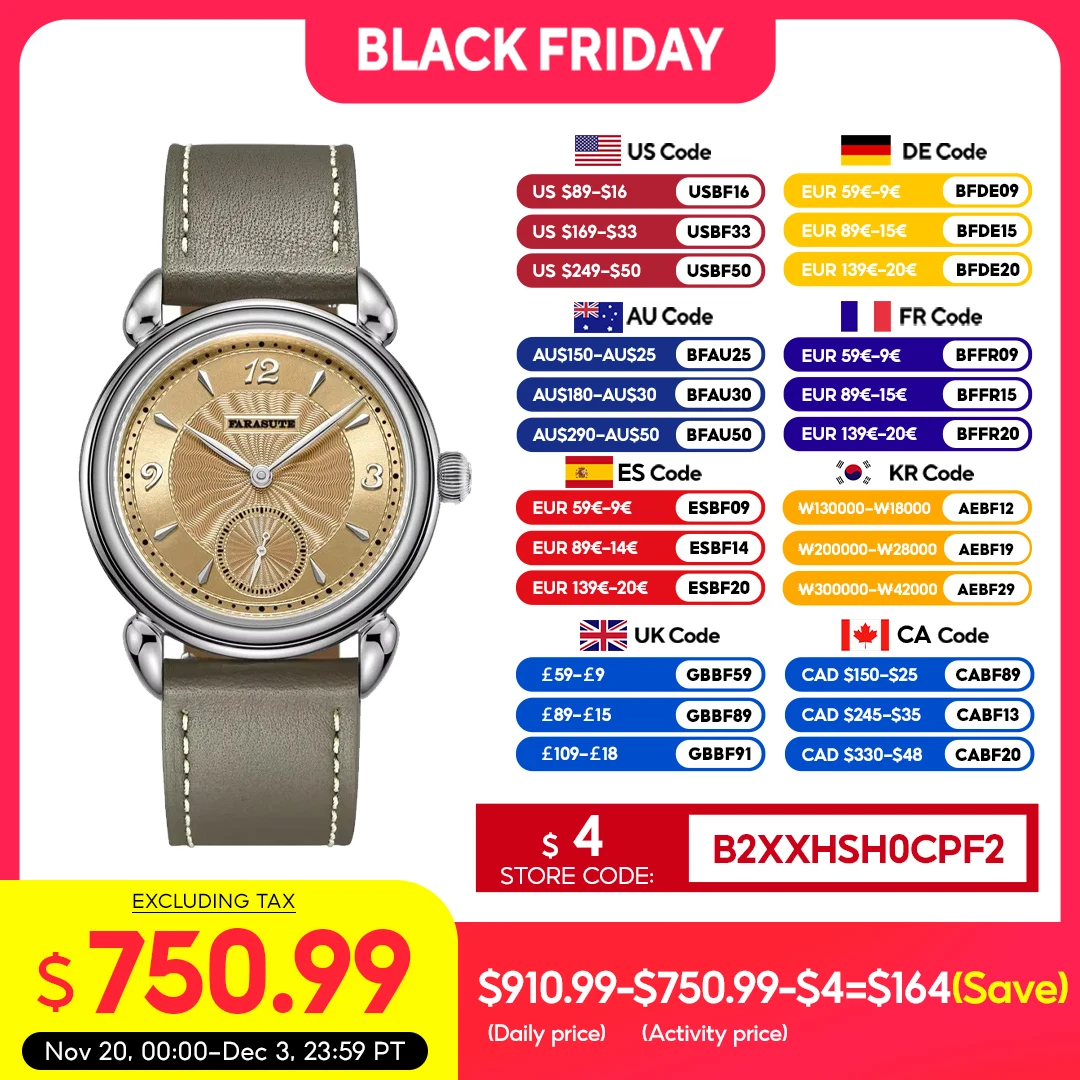 FARASUTE Top Brand Luxury Manual Mechanical Watch Mens Swiss SW261 Movement 5Bar Waterproof Stainless Steel Sapphire Wristwatch