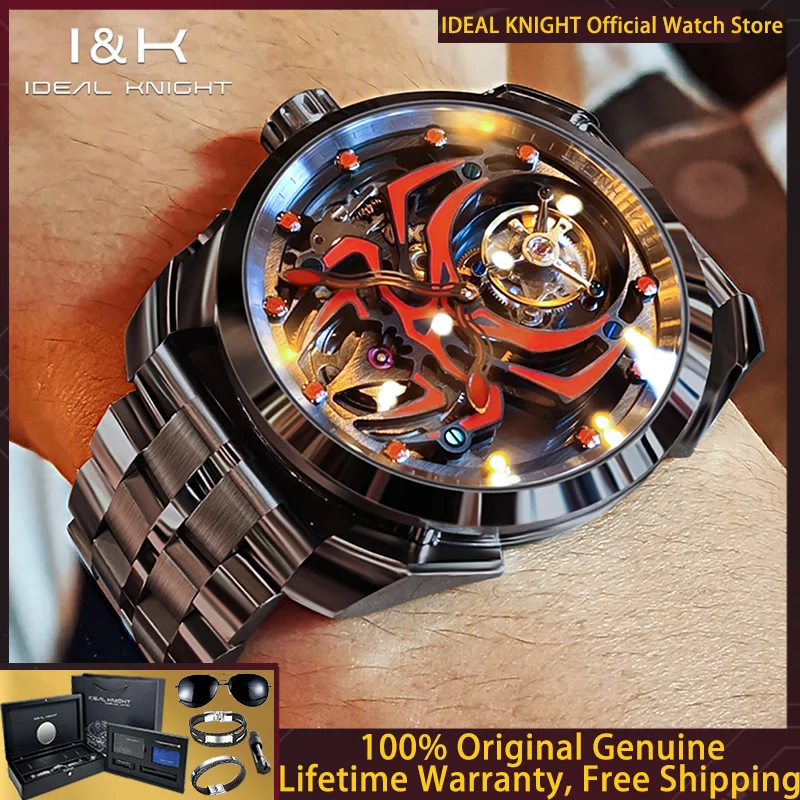 IDEAL KNIGHT 6802 Men True Tourbillon Watch High Luxury Spider Hollow Dial Limited Edition Brand Men Automatic Mechanical Watch