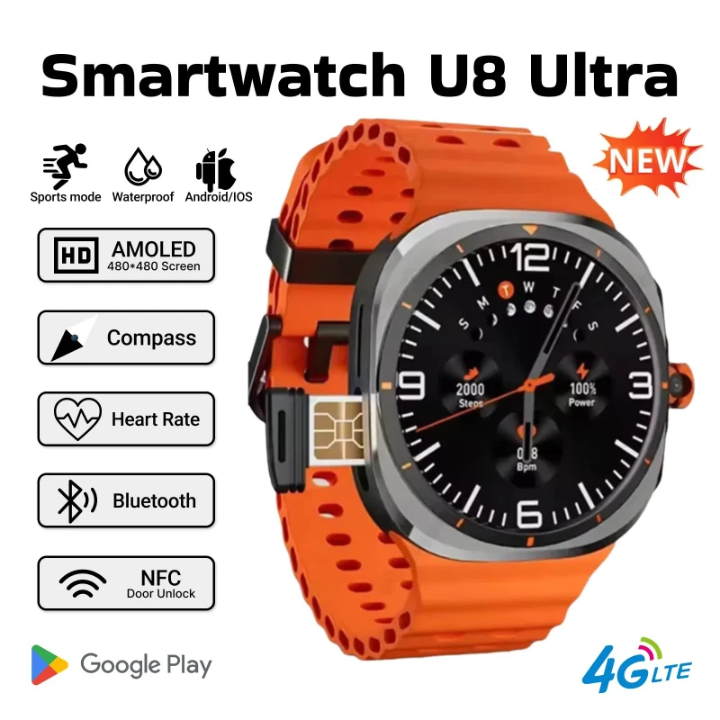 New Smart Watch Ultra 5G Smart Watch Android 1.508 Inch AMOLED Display 180 ° 8MP Rotating Camera GPS WiFi IP68 Waterproof
